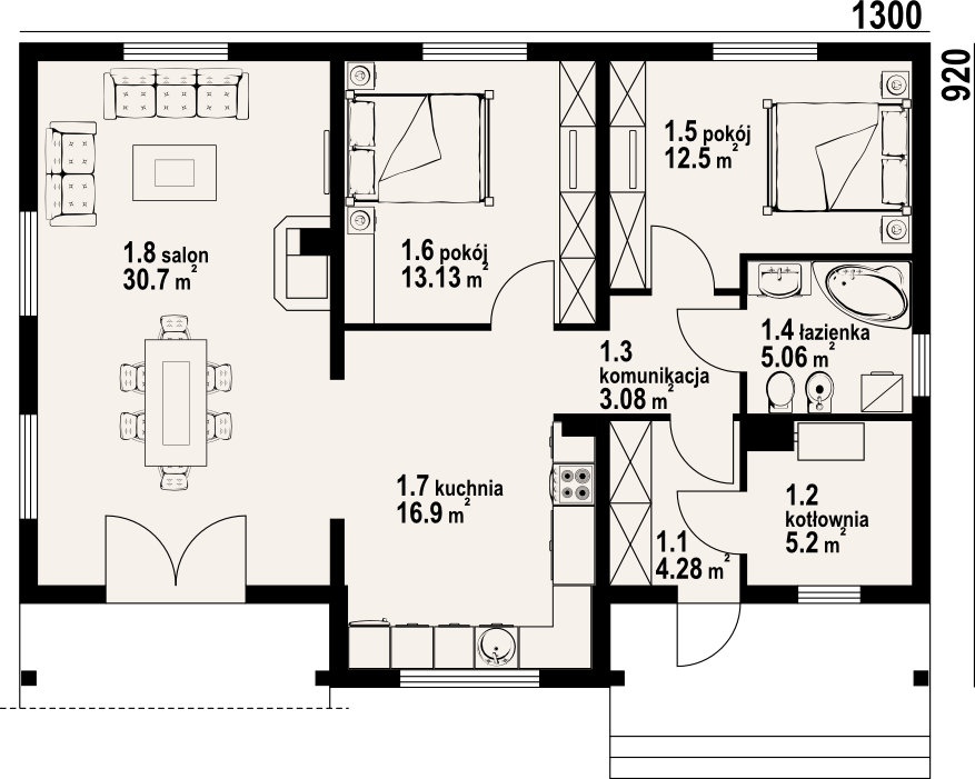 | Powierzchnia użytkowa domu: | 90,84 m² |