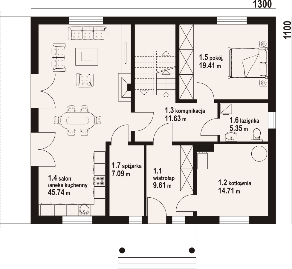 Powierzchnia użytkowa parteru:113,54 m²