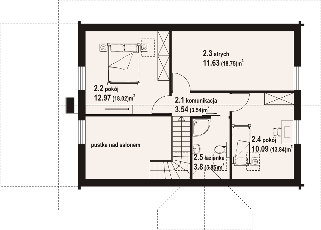 Powierzchnia całkowita poddasza:60 m²