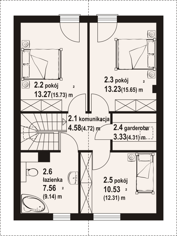 | Powierzchnia całkowita poddasza: | 61,86 m² |