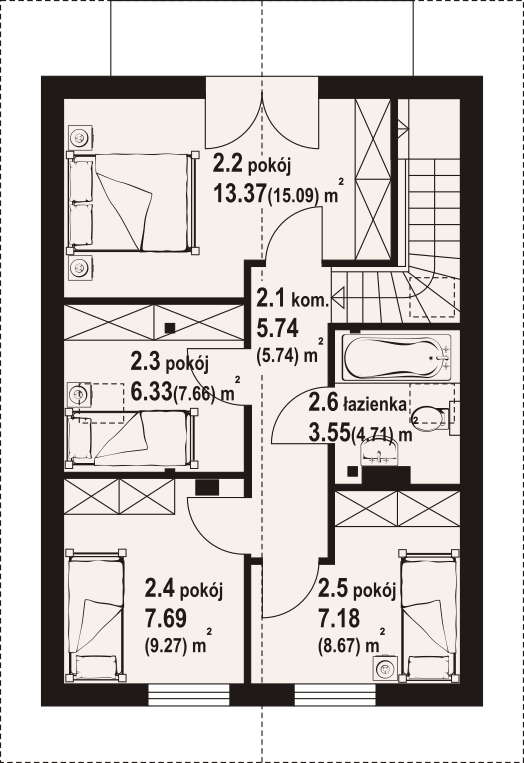 | Powierzchnia całkowita poddasza: | 51,14 m² |