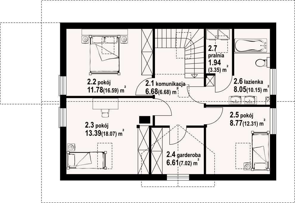| Powierzchnia użytkowa poddasza: | 57,22 m² |