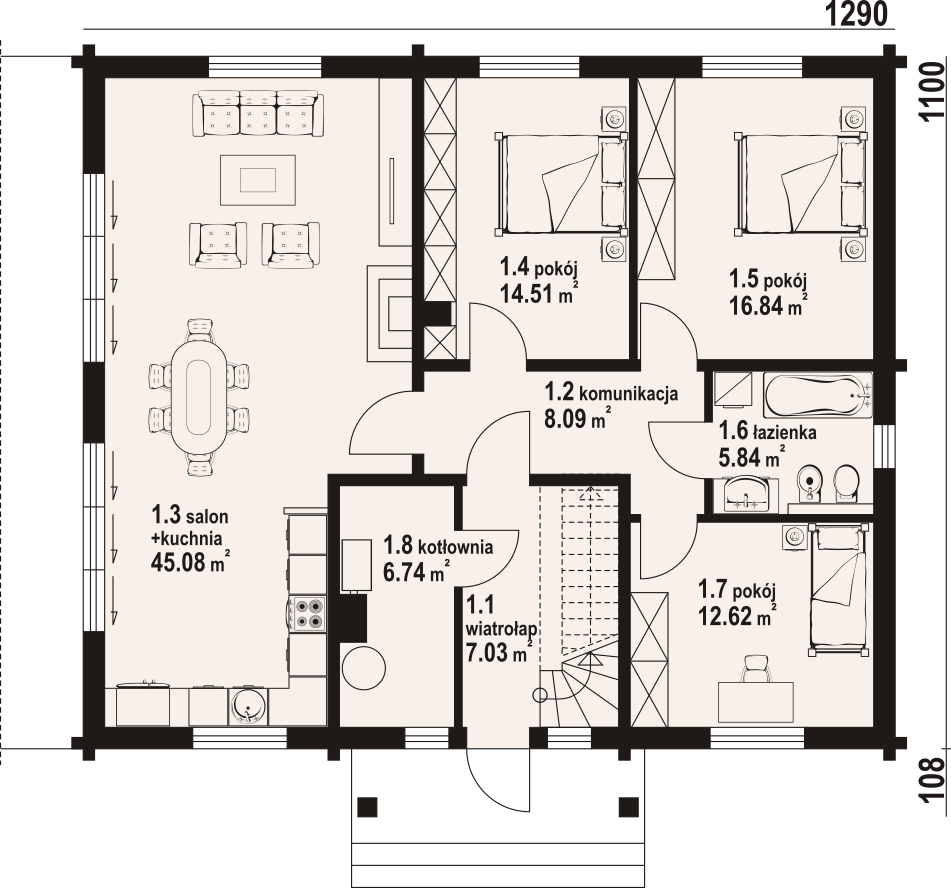 | Powierzchnia użytkowa parteru: | 116,75 m² |