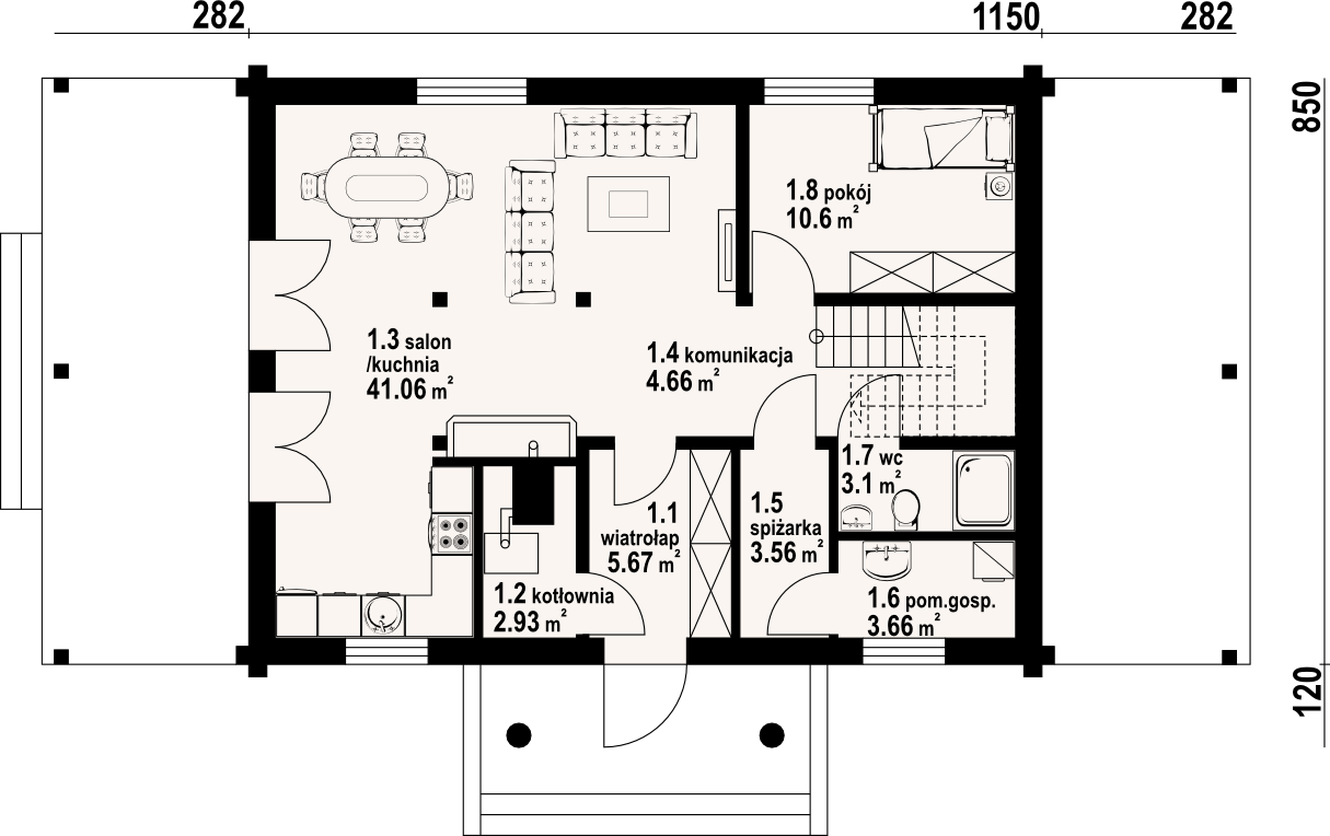 | Powierzchnia użytkowa domu: | 116,67 m² |