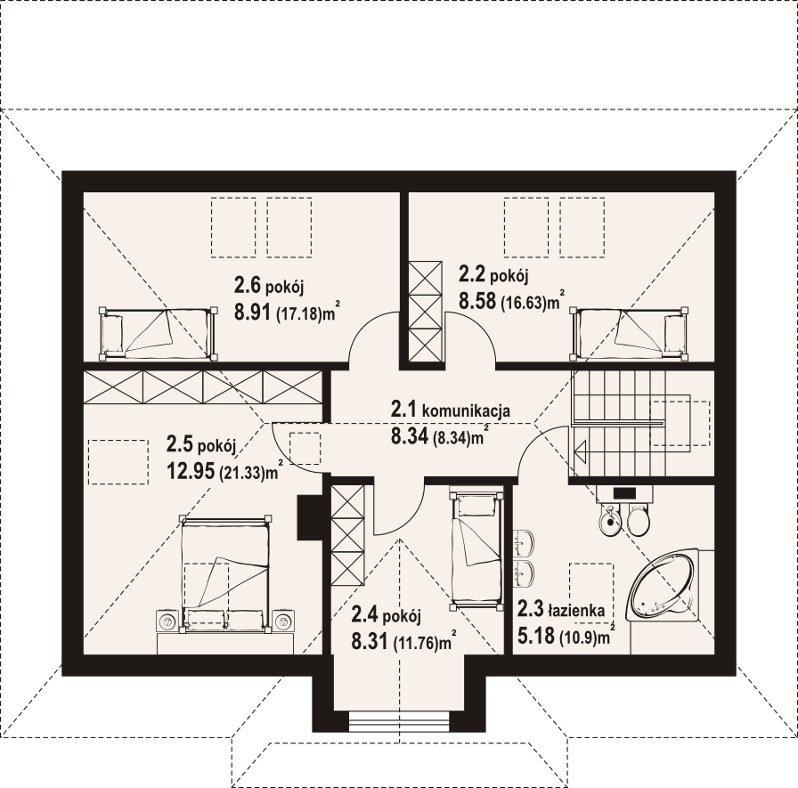 | Powierzchnia całkowita poddasza: | 86,74 m² |