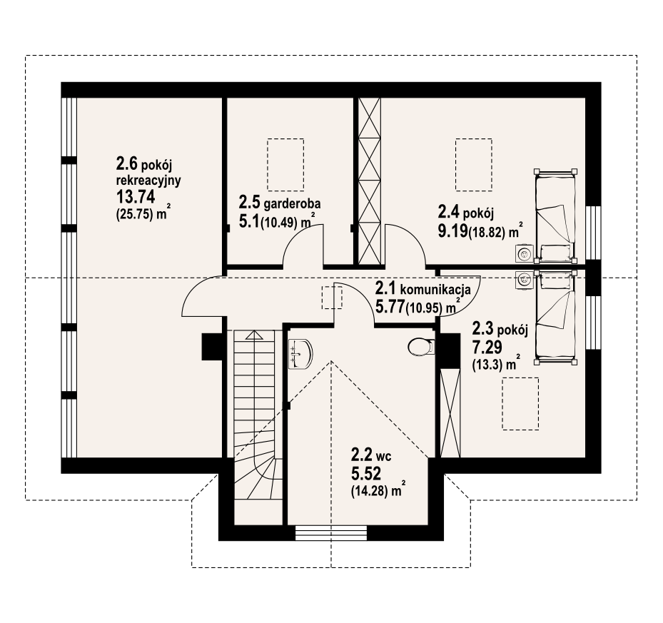 | Powierzchnia użytkowa poddasza: | 46,61 m² |