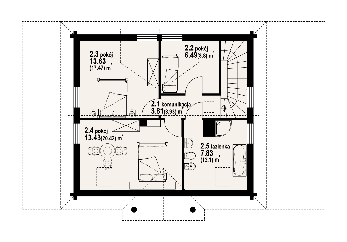 | Powierzchnia użytkowa poddasza: | 45,19 m² |