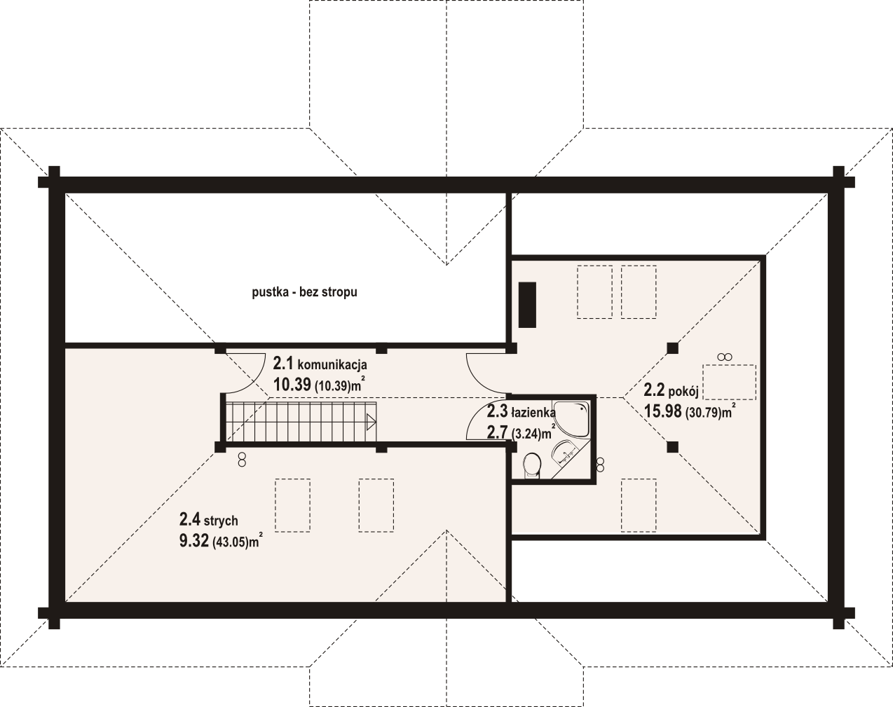 | Powierzchnia użytkowa poddasza: | 38,39 m² |