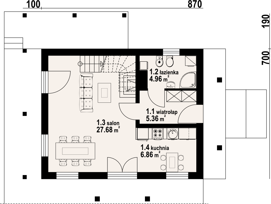 | Powierzchnia użytkowa parteru: | 44,86 m² |