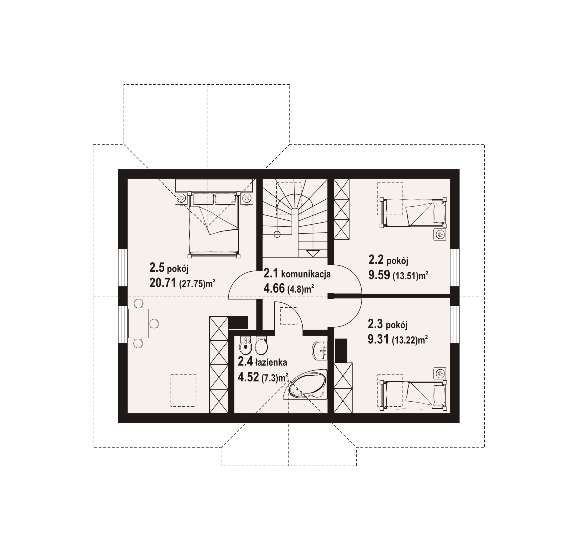 Powierzchnia całkowita poddasza:66,58 m²