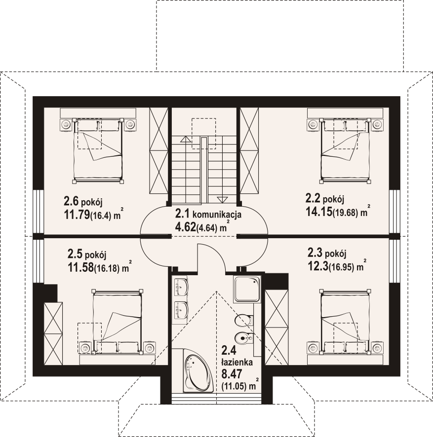 | Powierzchnia całkowita poddasza: | 84,90 m² |