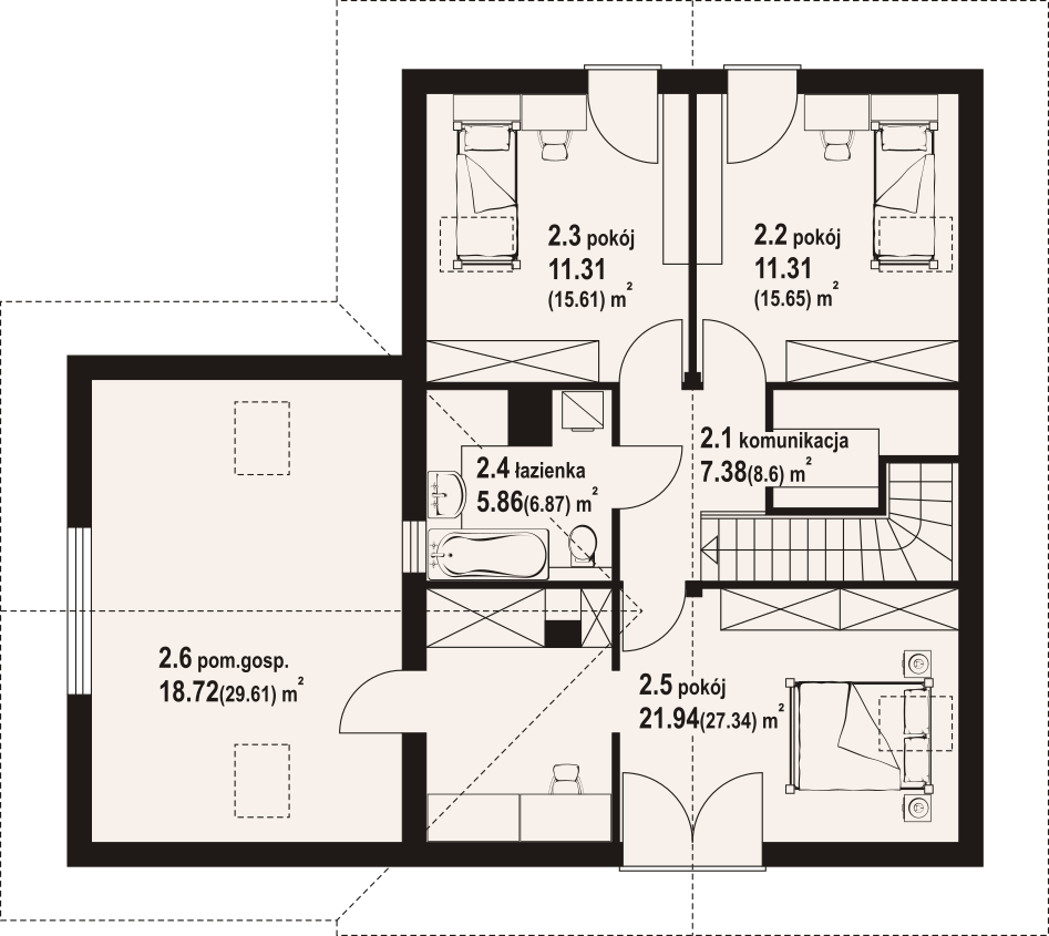 Powierzchnia całkowita poddasza:103,68 m²