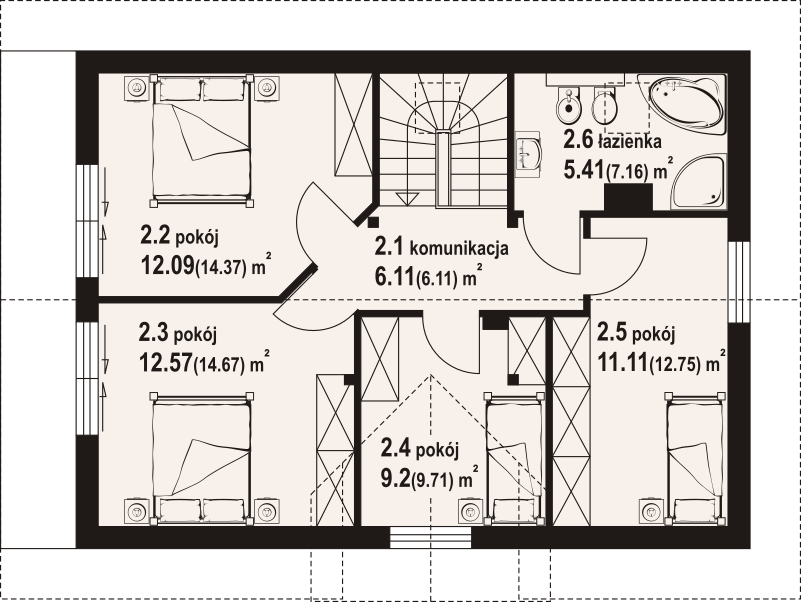 Powierzchnia całkowita poddasza:64,77 m²