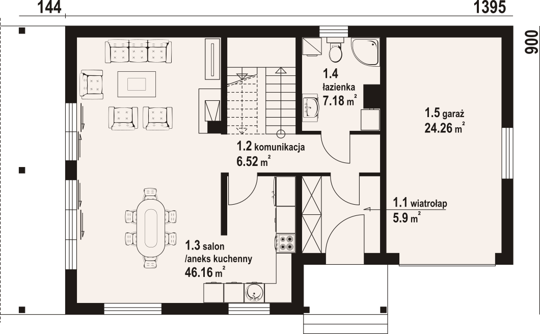Powierzchnia użytkowa parteru:90,20 m²