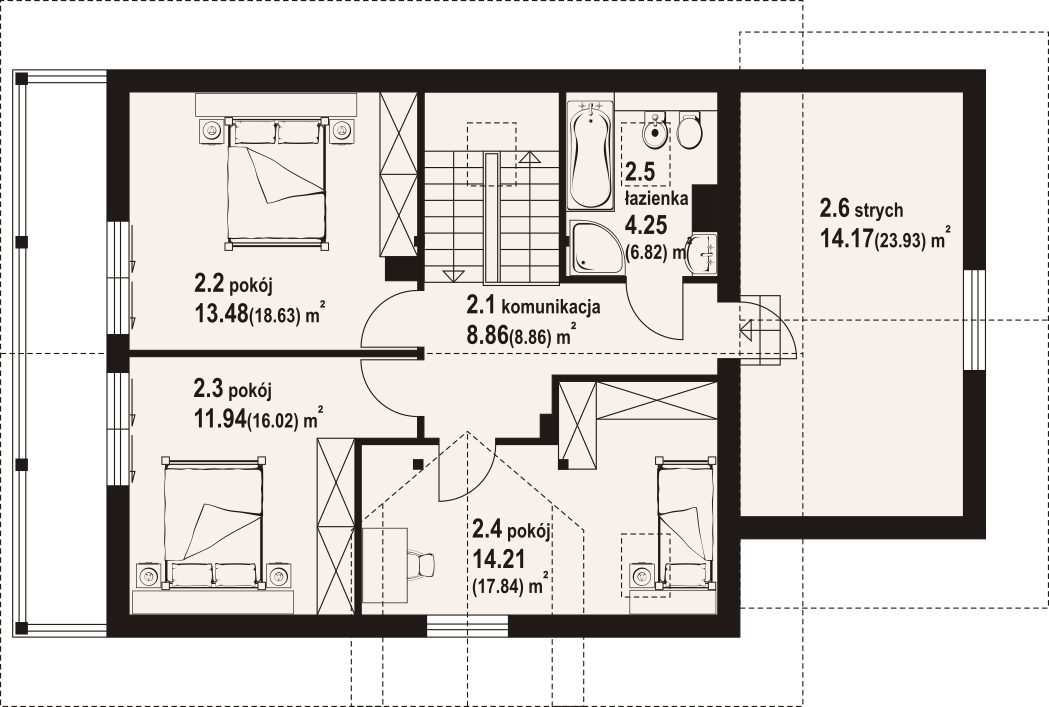 Powierzchnia całkowita poddasza:92,1 m²