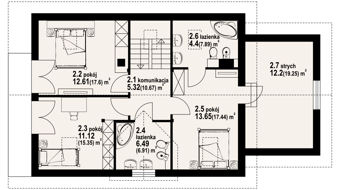 | Powierzchnia użytkowa poddasza: | 65,79 m² |