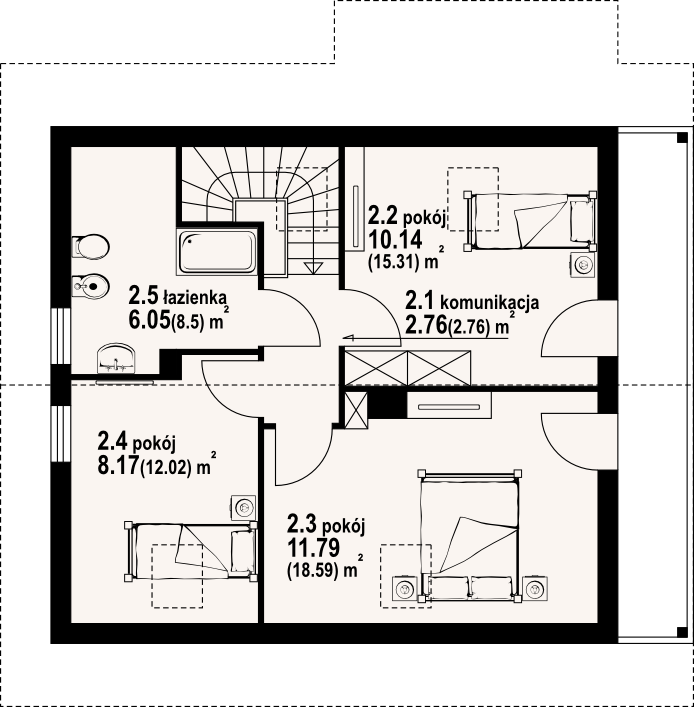 | Powierzchnia całkowita poddasza: | 57,18 m² |