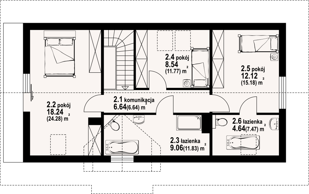 Powierzchnia całkowita poddasza:77,17 m²