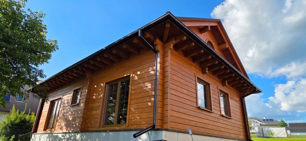 Dom zaimpregnowany olejami Osmo w kolorze CEDR.