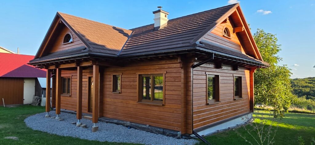 Dom zbudowany z bala prostokątnego 120 x 180 mm.
